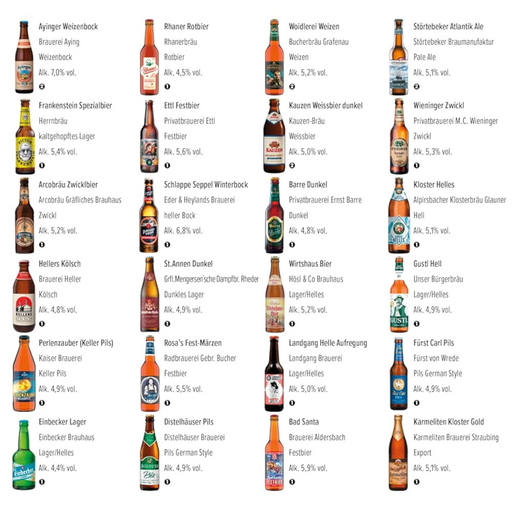Neben hellen Lagern oder Pils-Bieren befinden sich unter den 24 deutschen Bieren also natürlich auch ein Pale Ale, ein Weihnachtsbier oder ein Weißbier.
